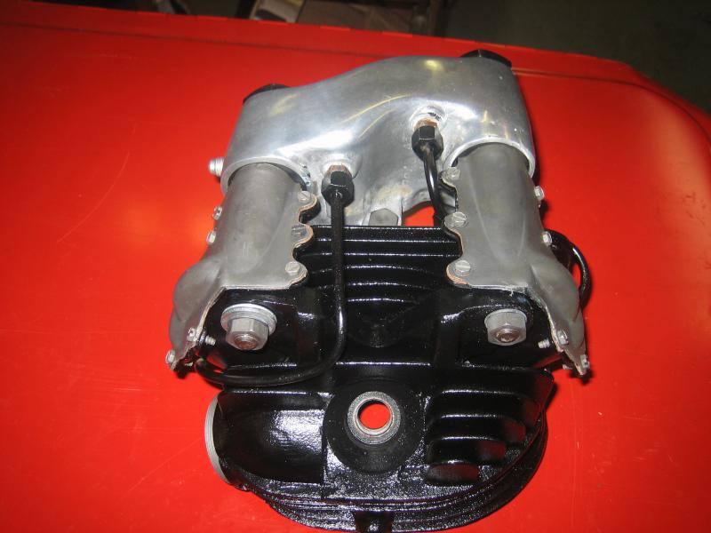 Third down are the heads after being milled .010 to clean everything up, the combustion chamber was also pocket cut .010 abound the edge to clear the top lip on the cylinder. New oversize valve seats were installed due to severely cracked and pitted seats after 45000 miles of riding.